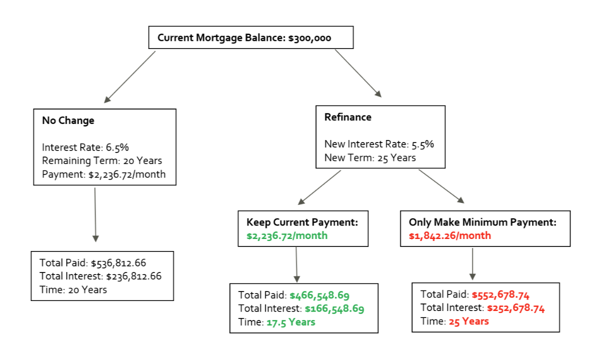 As seen in the flow chart above, confidence that you can maintain your original monthly payment is key – and can potentially save you thousands in interest.